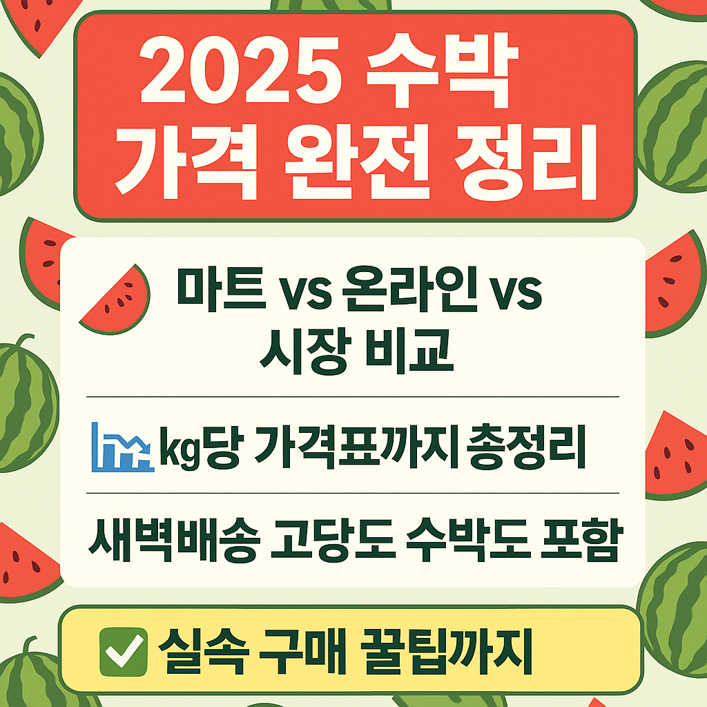 | 일반 슈퍼·시장 | 현물 수박 | 4만 원대까지 가능 | 5,000~7,000원/kg 이상 | 품질 불균형, 고가 상품도 있음 |